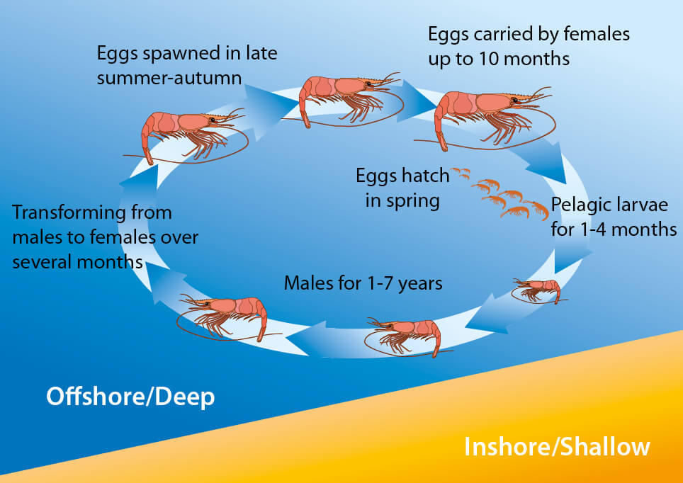 Figure A4.3 Schematic illustration of the Pandalus borealis life cycle (Fisheries and Oceans Canada, 2018).
